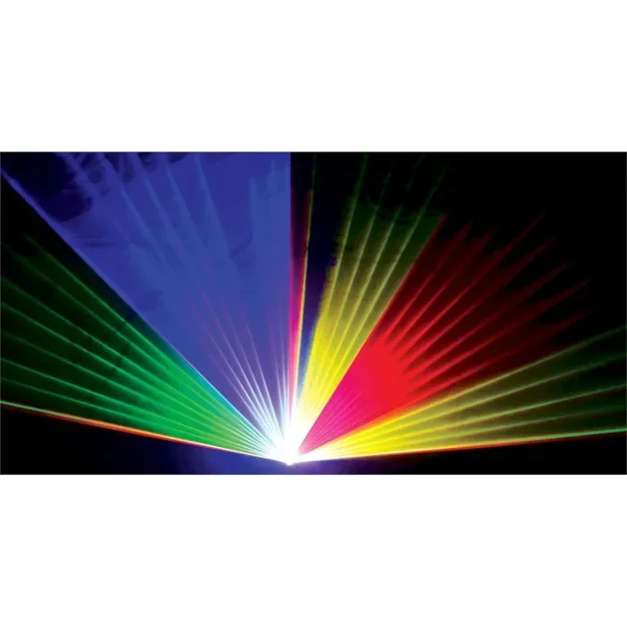Ce laser de Classe 3B offre une puissance totale de 1,1 Watt RGB (Rouge, Vert, Bleu) et intègre des moteurs de balayage rapides (25 kpps) pour des effets visuels dynamiques, incluant tunnels et animations préprogrammées. Il propose une polyvalence de contrôle (DMX, Automatique, Musique) et l'entrée ILDA pour une personnalisation avancée des shows graphiques. Idéal pour clubs, bars et discothèques mobiles.